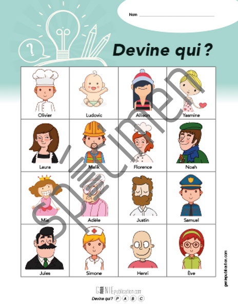 Les élèves jouent un contre un. Chaque élève doit deviner le personnage choisi par son adversaire en lui posant des questions se répondant uniquement par oui ou non.