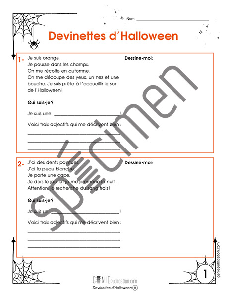 L’élève travaille le vocabulaire et les adjectifs en réalisant ces petites devinettes ludiques d’Halloween.