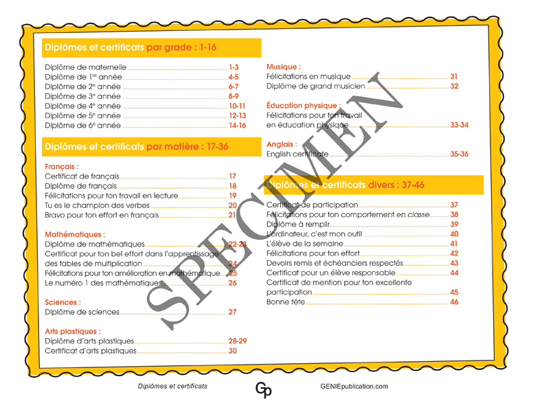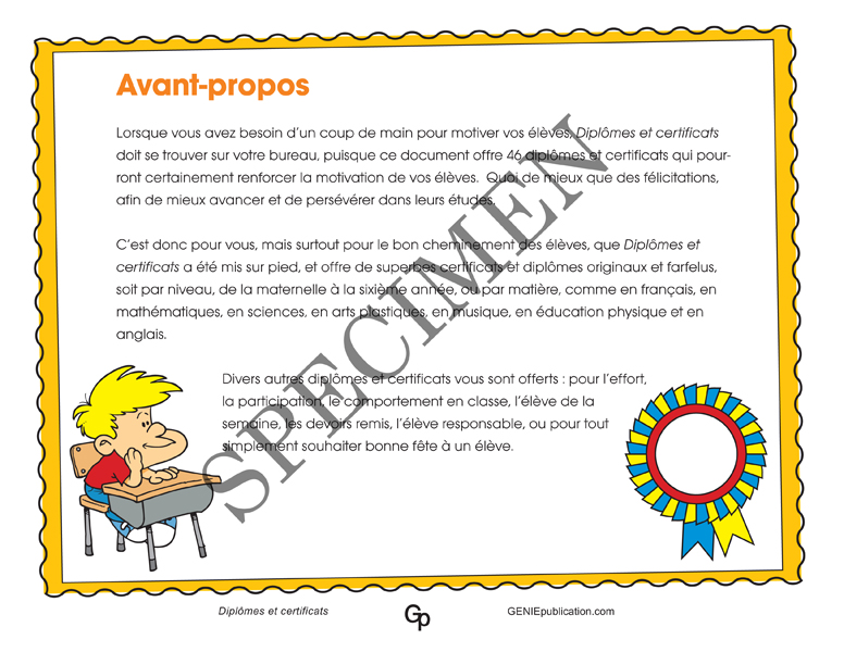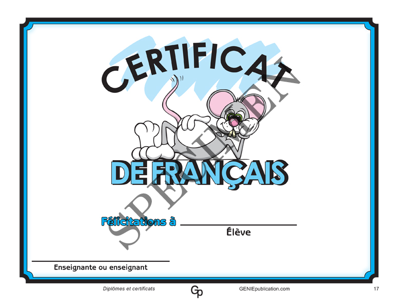 C’est donc pour vous, mais surtout pour le bon cheminement des élèves, que Diplômes et certificats a été mis sur pied, et offre de superbes certificats et diplômes originaux et farfelus, soit par niveau, de la maternelle à la sixième année, ou par matière, comme en français, en mathématiques, en sciences, en arts plastiques, en musique, en éducation physique et en anglais.