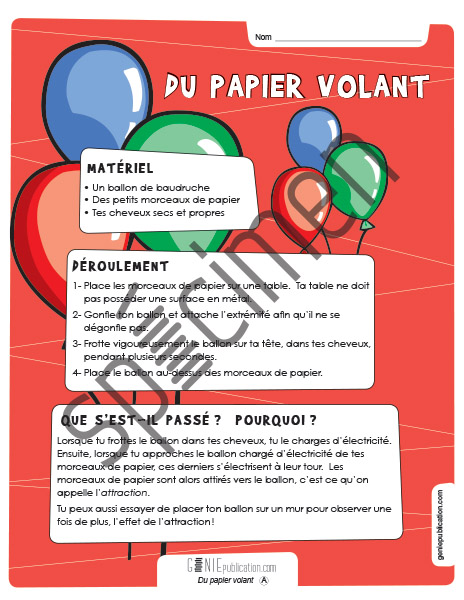 Activité scientifique qui permet à l'élève d'expérimenter l'effet de l'électricité statique.