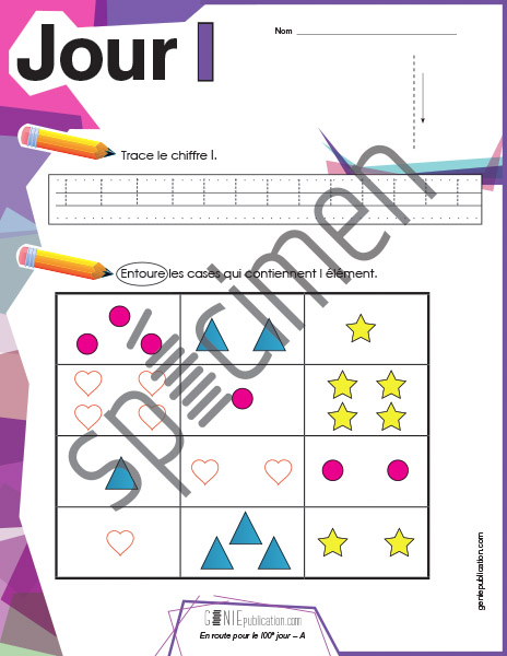 En route pour le I00e jour est un projet mathématique qui permet aux enfants de mieux percevoir le temps qui passe, de se repérer dans le temps, de se familiariser avec les nombres de 0 à I00 et d’apprivoiser la numération et l’estimation tout en s’amusant. Il vise une progression des apprentissages qui se fera en douceur jour après jour, en passant à travers différentes thématiques saisonnières. Vous y trouverez des activités en lien avec les mathématiques, mais celles-ci toucheront aussi d’autres compétences du préscolaire.