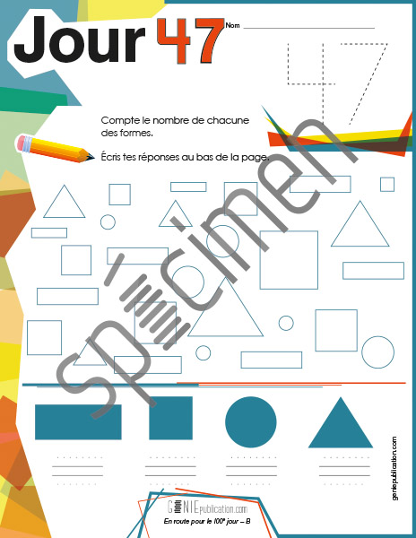 En route pour le I00e jour est un projet mathématique qui permet aux enfants de mieux percevoir le temps qui passe, de se repérer dans le temps, de se familiariser avec les nombres de 0 à I00 et d’apprivoiser la numération et l’estimation tout en s’amusant. Il vise une progression des apprentissages qui se fera en douceur jour après jour, en passant à travers différentes thématiques saisonnières. Vous y trouverez des activités en lien avec les mathématiques, mais celles-ci toucheront aussi d’autres compétences du préscolaire.