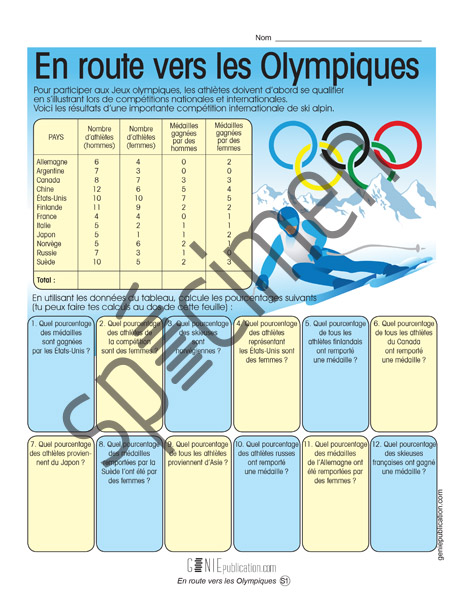 L’élève observe le tableau des médailles et calcule les pourcentages demandés.