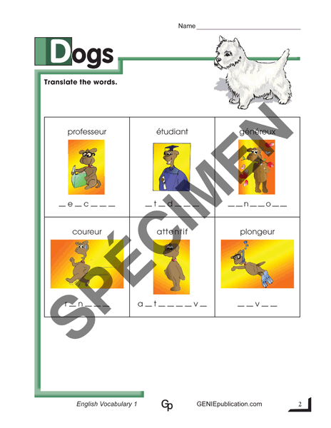 Le document English Vocabulary 1 est destiné aux élèves de 3e à 6e année du primaire. Il s’inscrit dans le cheminement de l’apprentissage de l’anglais, langue seconde.