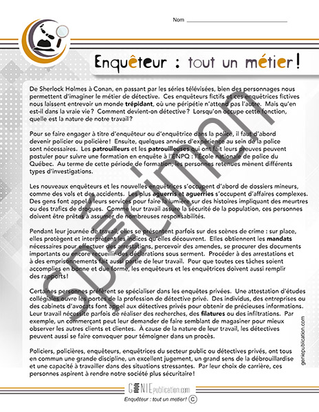 L’élève doit lire un texte et donner la définition de différents mots complexes du texte.