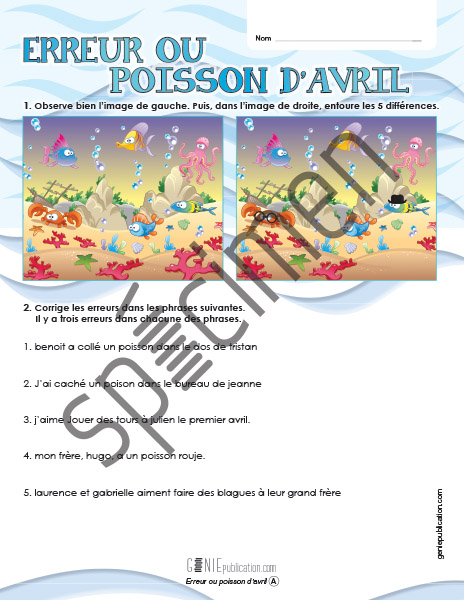 L'élève doit trouver les différences entre deux images. Il doit aussi corriger des erreurs dans des phrases.
