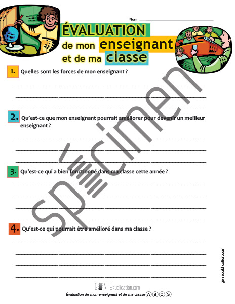 Cette fiche d'évaluation permet à l'élève de cibler les points forts et les points faibles de son enseignant et de sa classe.
