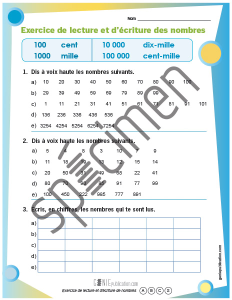 Exercice de lecture et d'écriture des nombres