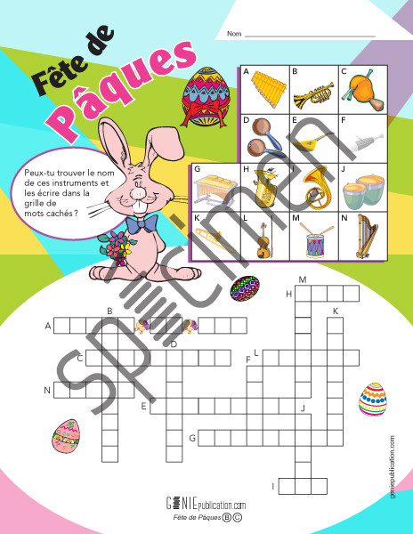 Jeu de mots croisés musical sur le thème de Pâques.