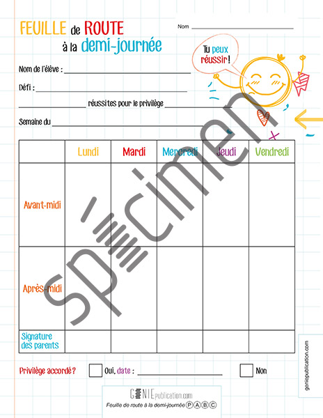 Feuille à utiliser avec un ou une élève pour l'aider à mieux se comporter en classe.