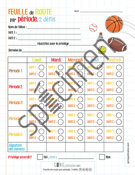 Feuille à utiliser avec un ou une élève pour l'aider à mieux se comporter en classe.