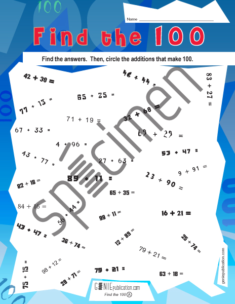 L'élève doit résoudre une série d'additions afin de trouver celles qui donnent 100.