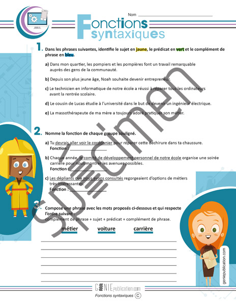 Activité dans laquelle l'élève travaille les fonctions syntaxiques et les groupes constituants de la phrase.