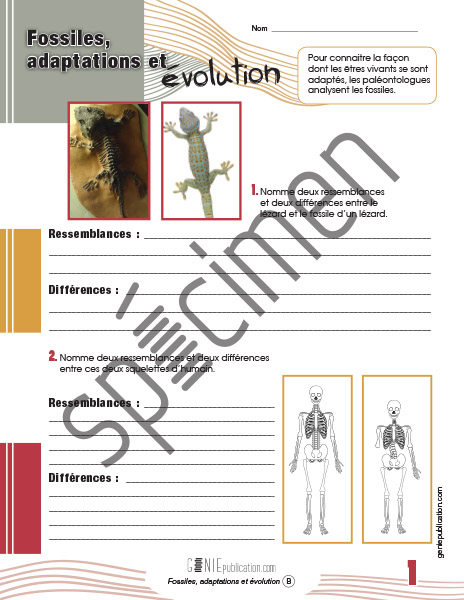 L’élève doit comparer les fossiles de différents êtres vivants et établir une liste de ressemblances et de différences.