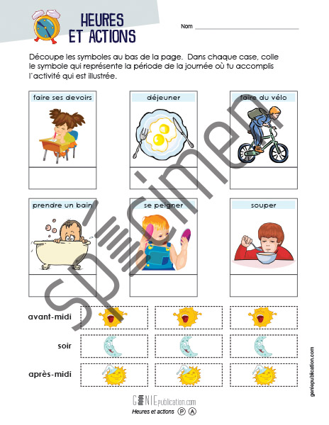 L'élève doit associer des actions quotidiennes à des moments de la journée.