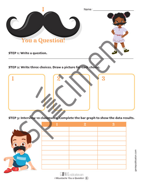 The student writes a question and draws 3 answer choices. He or she then surveys 10 people in their class and records the results in a bar graph.