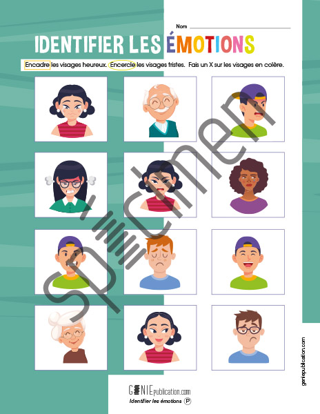 L'élève doit identifier les différentes émotions sur les visages.