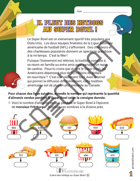 Le Super Bowl est de plus en plus ancré comme un évènement social en Amérique du Nord. Dans cette activité, l’élève doit observer des nombres et les arrondir.