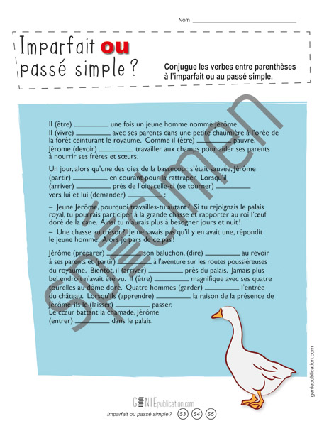 Texte narratif dans lequel l'élève doit choisir de conjuguer les verbes demandés à l'imparfait ou au passé simple.