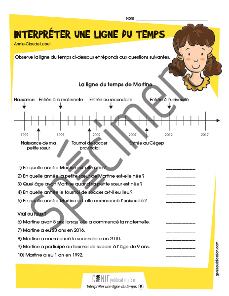 L'élève doit observer la ligne du temps proposée et répondre aux questions.