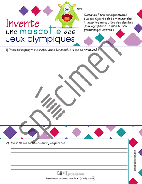 L’élève invente et dessine une mascotte pour les Jeux olympiques puis la décrit en quelques phrases.