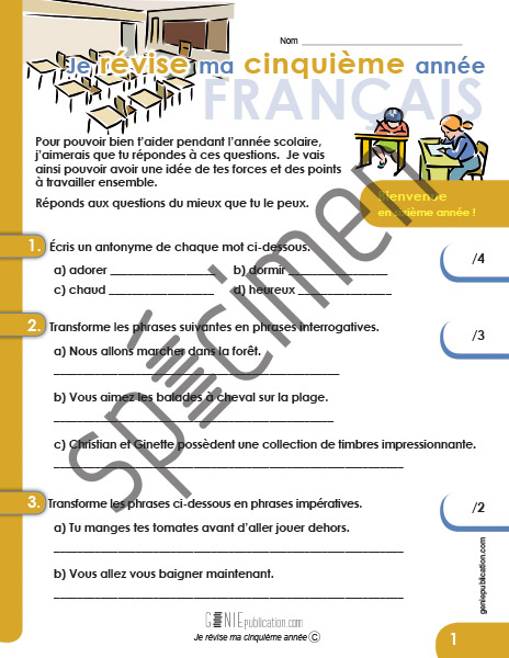 Ce document propose une révision des notions de la cinquième année et s'adresse aux élèves qui commencent leur sixième année du primaire. Il peut être utilisé par l'enseignant comme test diagnostique en début d'année afin d'avoir une idée du niveau des élèves et de leur compréhension. Il peut aussi être utilisé par l'enseignant en fin d'année pour effectuer une révision des notions vues pendant l'année scolaire.