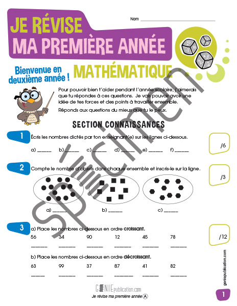 Ce document propose une révision des notions de la première année et s'adresse aux élèves qui commencent leur deuxième année du primaire. Il peut être utilisé par l'enseignant comme test diagnostique en début d'année afin d'avoir une idée du niveau des élèves et de leur compréhension. Il peut aussi être utilisé par l'enseignant en fin d'année pour effectuer une révision des notions vues pendant l'année scolaire.