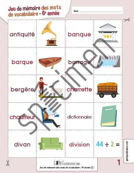 Jeu de mémoire des mots de vocabulaire – 6e année