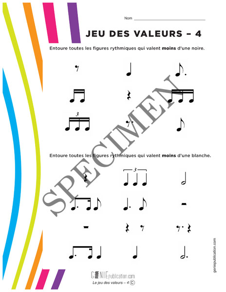 Cet exercice permet d'évaluer la capacité de l'élève à additionner les différentes valeurs rythmiques.