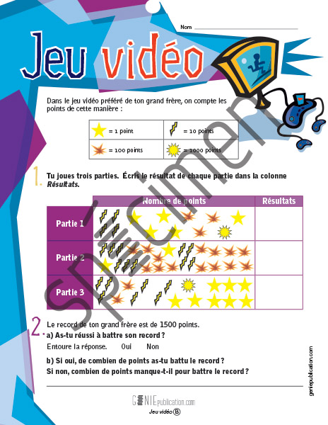 L'élève doit découvrir des nombres à partir d'un code de symboles, puis répondre à une question mathématique.