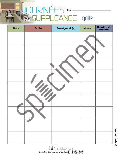 Le suppléant ou la suppléante peut utiliser cette grille pour faire un suivi de ses journées de suppléance.