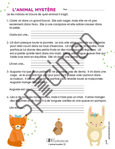 L’élève doit lire des indices pour trouver quel animal est décrit.