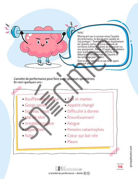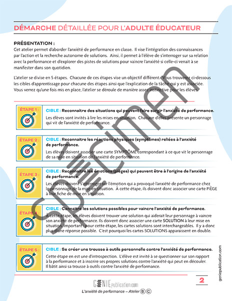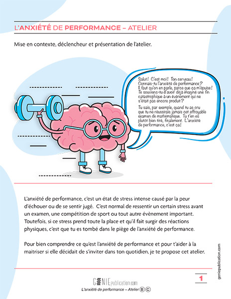 Cet atelier a pour but d’amener l’élève à se questionner sur son rapport à la performance. En seconde partie, l’élève est invité à développer lui-même sa trousse à outils contre l’anxiété de performance.
