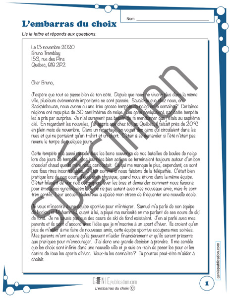 L’élève doit lire une lettre et répondre à des questions. Il doit également rédiger une réponse à la lettre.