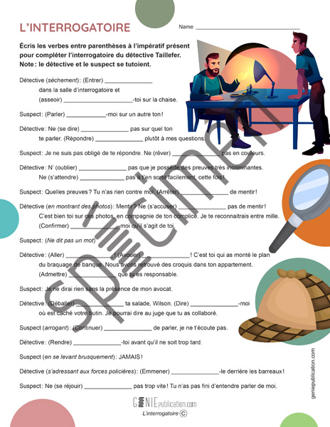 L’élève conjugue les verbes à l’impératif dans un texte sur les enquêtes.