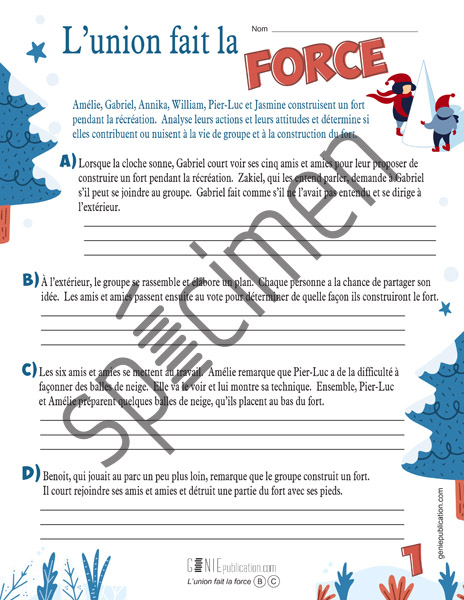L’élève doit lire un texte et déterminer comment les attitudes et les comportements des personnage influencent la vie de groupe et l’atteinte de l’objectif commun.