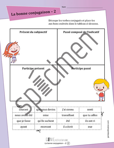L'élève doit classer les verbes selon le temps où ils sont conjugués.
