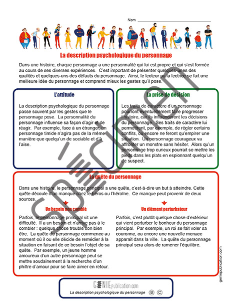 Cet aide-mémoire donne des conseils à l’élève pour effectuer la description psychologique détaillée d’un personnage.
