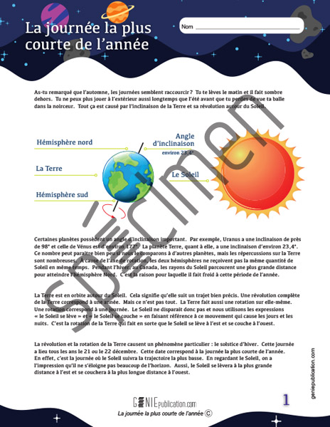 L’élève lit un texte sur l’axe de rotation de la Terre puis répond à des questions.