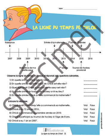 L'élève doit lire une ligne du temps et répondre aux questions.