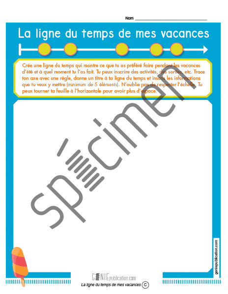 L'élève doit tracer sa propre ligne du temps et y inscrire des activités réalisées au cours de l'été.