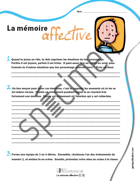 L'élève doit faire appel à sa mémoire affective pour décrire et exprimer une émotion de son choix.