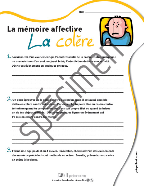 L'élève doit faire appel à sa mémoire affective pour décrire et exprimer la colère.