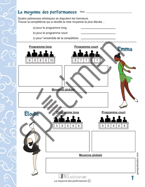 L’élève doit calculer la moyenne pour chaque épreuve réalisée par les différents patineurs et les différentes patineuses afin de déterminer la personne gagnante.