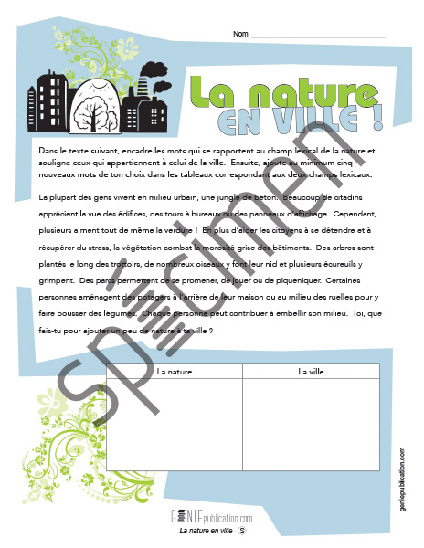 L'élève doit repérer des mots appartenant à deux champs lexicaux différents dans un texte, puis ajouter ses propres mots aux champs.