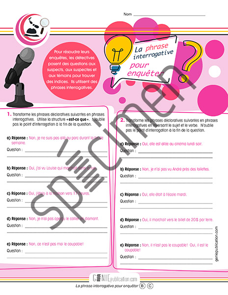 L’élève doit transformer les phrases déclaratives en phrases interrogatives.