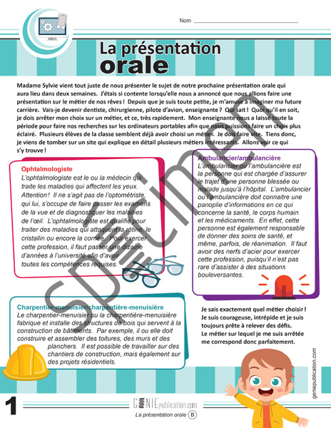 Activité dans laquelle l'élève lit un texte et répond à des questions de réaction et d'inférence.