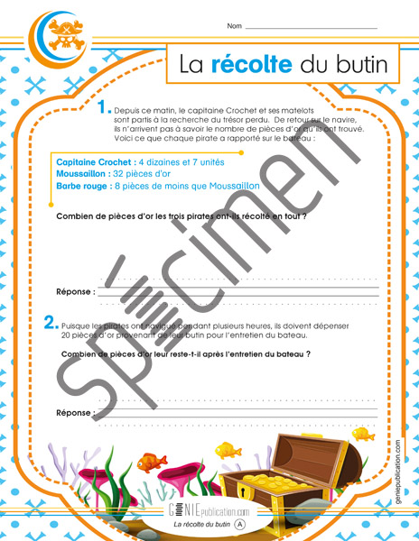 L'élève doit calculer le montant du butin amassé par les pirates.