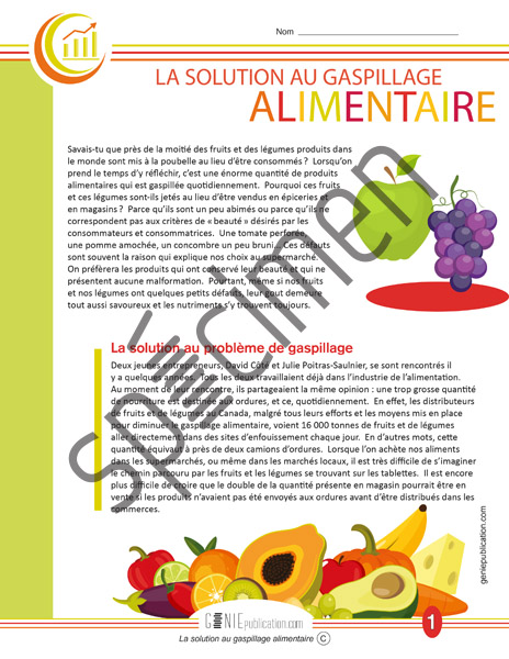 Compréhension de texte sur l'entreprise Loop qui vise à diminuer le gaspillage alimentaire.