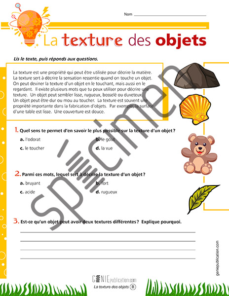 L’élève doit lire un texte et répondre à des questions sur les propriétés des matériaux.